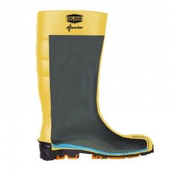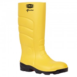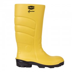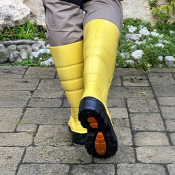 Botte de sécurité jaune ALLWORKER spécialement conçue pour l’agriculture et l’industrie agroalimentaire, elle protège efficacement contre les écrasements et les glissements. Confectionnée en Solithane®, un matériau innovant développé par SOLIDUR, elle se distingue par sa souplesse, sa légèreté et sa résistance. Sa semelle extérieure multi-densité intègre un insert GripControl®, conçu pour offrir une adhérence optimale et une protection contre l’abrasion, le lisier, les cailloux tranchants, ainsi que les huiles et hydrocarbures. L’association du Solithane® et du GripControl®, combinée à un embout renforcé, garantit une sécurité accrue et un maintien sûr.