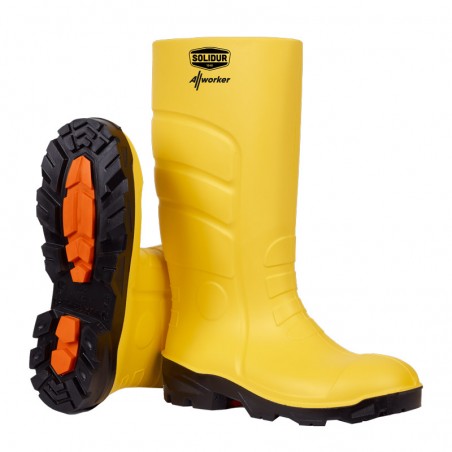 La gamme ALL WORKER® est universelle de par ses déclinaisons en 5 coloris avec l’alliance de 2 technologies développées par SOLIDUR. Les bottes ALL WORKER® offrent une grande légèreté et robustesse grâce à leur tige en Solithane®. La semelle extérieure profilée multi-densité est également fabriquée à partir de Solithane® avec un insert GripControl® permettant une adhérence à toute épreuve.